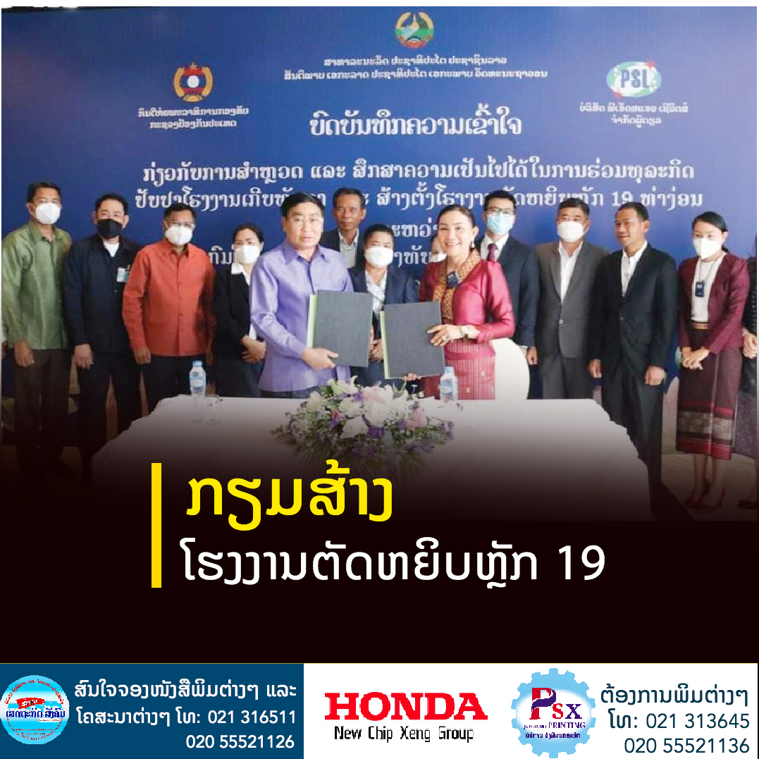 ວັນທີ 29 ພະຈິກ 2021 ນີ້, ກົມໃຫຍ່ພະລາທິການກອງທັບໄດ້ຈັດພິທີເຊັນບົດບັນທຶກຄວາມເຂົ້າໃຈກ່ຽວກັບການສຳຫຼວດ ແລະສຶກສາຄວາມເປັນໄປໄດ້ໃນການຮ່ວມທຸລະກິດປັບປຸງໂຮງງານເກີບທັນວາ ແລະສ້າງຕັ້ງໂຮງງານຕັດຫຍິບຫຼັກ 19 ທ່າງ່ອນຂອງບໍລິສັດ ພີເອັດສແອວ ເຊີວິດສ໌ ຈຳກັດຜູ້ດຽວ,