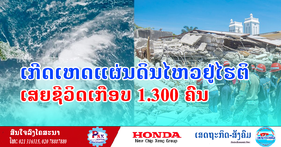 ວັນທີ 15 ສິງຫາຜ່ານມາທາງການ ໄຮຕີ ເປີດເຜີຍວ່າ: ເກີດແຜ່ນດິນໄຫວຢ່າງຮຸນແຮງຂະໜາດ 7,2 ລິກເຕີ ທາງພາກໃຕ້ຂອງປະເທດໂດຍມີສູນກາງເລິກ 10 ກິໂລແມັດ ເຮັດໃຫ້ມີຜູ້ເສຍຊີວິດຢ່າງໜ້ອຍ 1.297 ຄົນ ແລະບາດເຈັບປະມານ 5.700 ຄົນ,