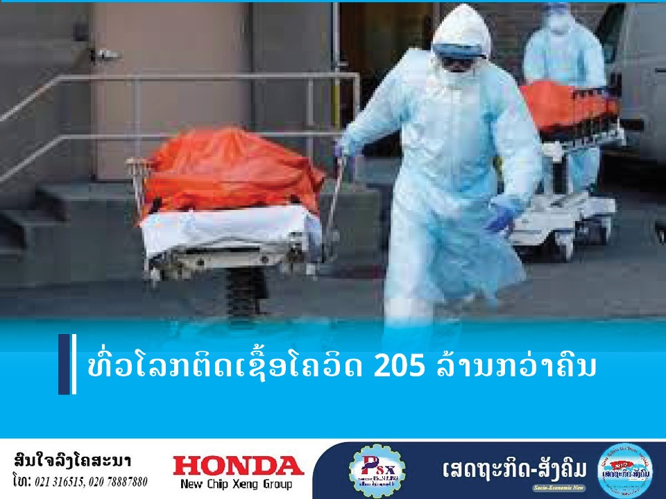 ທົ່ວໂລກມີຍອດຜູ້ຕິດເຊື້ອໂຄວິດ-19 ເພີ່ມຂຶ້ນຫຼາຍກວ່າ 205 ລ້ານຄົນ ແລະເສຍຊີວິດຫຼາຍກວ່າ 4,3 ລ້ານຄົນ