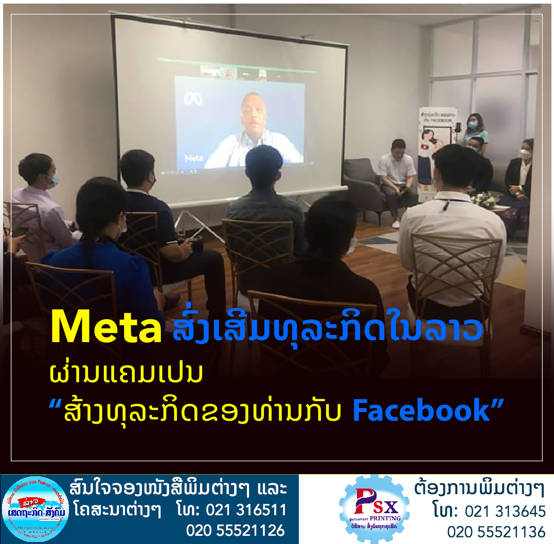 Meta ສົ່ງເສີມທຸລະກິດໃນລາວຜ່ານແຄມເປນ “ສ້າງທຸລະກິດຂອງທ່ານກັບ Facebook” ເພື່ອເປັນການສົ່ງເສີມທຸລະກິດຂະໜາດນ້ອຍ ແລະກາງໃນປະເທດໃນຊ່ວງການແຜ່ລະບາດຂອງພະຍາດໂຄວິດ-19 ແລະຜັກດັນເສດຖະກິດດິຈີຕອນຂອງປະເທດລາວ,