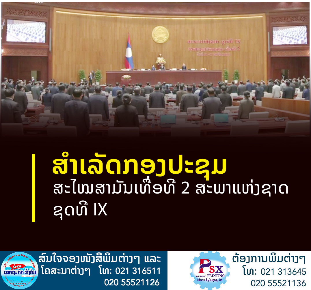 ກອງປະຊຸມສະໄໝສາມັນເທື່ອ ທີ 2 ຂອງສະພາແຫ່ງຊາດ ຊຸດທີ IX ໄດ້ອັດລົງດ້ວຍຜົນສໍາເລັດໃນວັນທີ 17 ພະຈິກ 2021, ພາຍຫຼັງດໍາເນີນມາແຕ່ວັນທີ 1-17 ພະຈິກ 2021, ພາຍໃຕ້ການເປັນປະທານຂອງທ່ານ ໄຊສົມພອນ ພົມວິຫານ ປະທານສະພາແຫ່ງຊາດ,