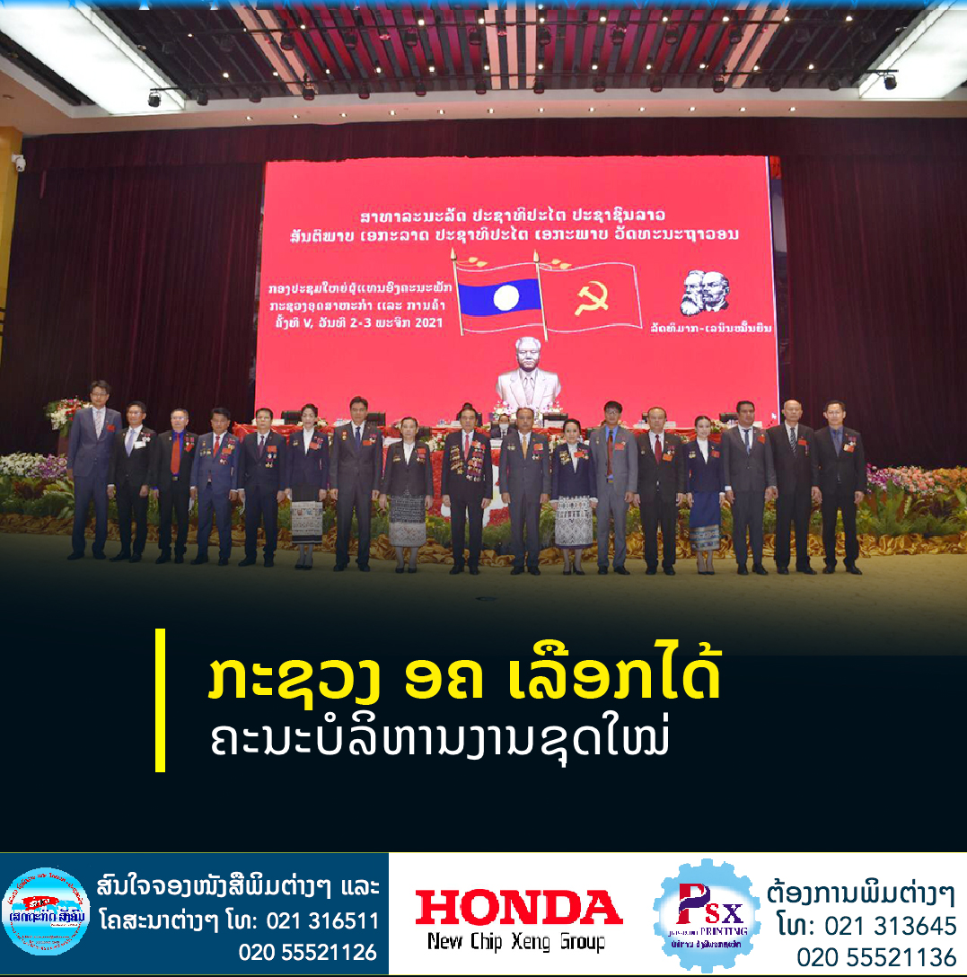ກອງປະຊຸມໃຫຍ່ຜູ້ແທນອົງຄະນະພັກກະຊວງອຸດສາຫະກຳ ແລະ ການຄ້າ (ອຄ) ຄັ້ງທີ V ທີ່ໄດ້ຈັດຂຶ້ນໃນລະຫວ່າງວັນທີ 2-3 ພະຈິກ 2021 ປິດລົງດ້ວຍຜົນສຳເລັດອັນຈົບງານໂດຍການເປັນປະທານຂອງສະຫາຍ ຄໍາແພງ ໄຊສົມແພງ ກໍາມະການສູນກາງພັກ,