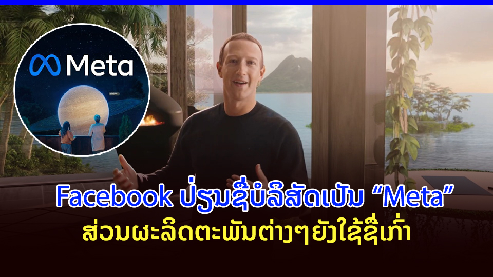 ພາຍຫຼັງທີ່ມີກະແສກ່ຽວກັບການປ່ຽນຊື່ກ່ຽວກັບເຟສບຸກເຮັດໃຫ້ຫຼາຍຄົນຕົກໃຈ, ຊຶ່ງຫຼ້າສູດ Mark Zuckerberg ເຈົ້າຂອງບໍລິສັດໄດ້ອອກມາປະກາດຊື່ບໍລິສັດຈາກ “Facebook” ເປັນ “Meta” ຊຶ່ງມີຜົນໃນວັນທີ 29 ຕຸລາ 2021 ນີ້ ແຕ່ຜະລິດຕະພັນຕ່າງໆທີ່ເປັນສື່ສັງຄົມອອນລາຍໃນບໍລິສັດຍັງໃຊ້ຊື່ເກົ່າ.