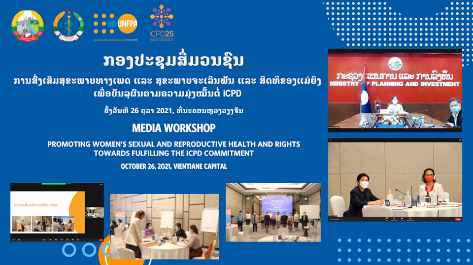 ວັນທີ 26 ຕຸລາ 2021 ກະຊວງແຜນການ ແລະການລົງທຶນຮ່ວມກັບອົງການສະຫະປະຊາຊາດ UNFPA ໄດ້ຈັດກອງປະຊຸມສື່ມ່ວນຊົນການສົ່ງເສີມສຸຂະພາບທາງເພດ ແລະສຸຂະພາບຈະເລີນພັນ ແລະສິດທິຂອງແມ່ຍິງເພື່ອບັນລຸຜົນຕາມຄວາມມຸງໝັ້ນຕໍ່ ICPD
