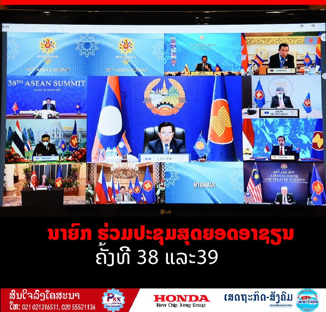 ວັນທີ 26 ຕຸລາ 2021 ທີ່ຫໍປະຊຸມແຫ່ງຊາດ, ທ່ານ ພັນຄຳ ວິພາວັນ ນາຍົກລັດຖະມົນຕີແຫ່ງ ສປປ ລາວ ໄດ້ນໍາພາຄະນະຜູ້ແທນລາວເຂົ້າຮ່ວມກອງປະຊຸມສຸດຍອດອາຊຽນ ຄັ້ງທີ 38 ແລະ 39