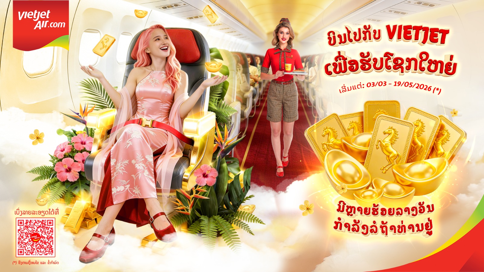 “ບິນກັບ Vietjet, ລຸ້ນຮັບໂຊກຄຳ” ແລະ ສ່ວນຫຼຸດຄ່າປີ້ຍົນສູງສຸດເຖິງ 83% ເພື່ອສະເຫຼີມສະຫຼອງວັນແມ່ຍິງສາກົນ.