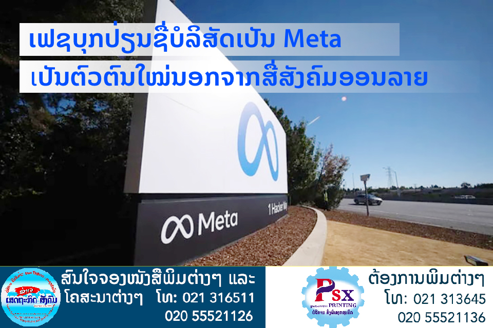 ໃນທີ່ສຸດເຟຊບຸກກໍ່ປະກາດການປ່ຽນແປງຄັ້ງໃຫຍ່ນັ້ນຄື ຊື່ຂອງບໍລິສັດເປັນ Meta ຊຶ່ງສາມາດສະແດງວິໄສທັດວ່າເປັນບໍລິສັດສຳລັບໃຫ້ບໍລິການໂລກເໝືອນ ຫຼື Metaverse ຊຶ່ງຈະມີບໍລິການອື່ນໆທີ່ບໍ່ໄດ້ມີແຕ່ Social Network.