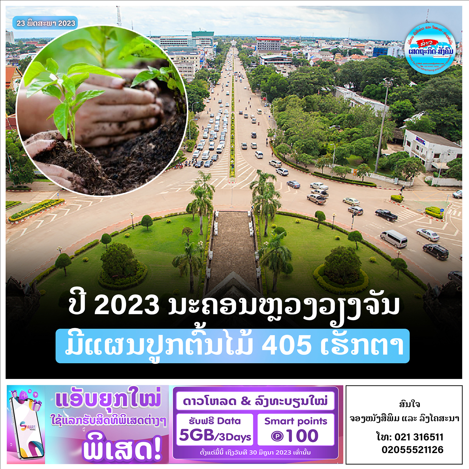ກະຊວງກະສິກຳ ແລະປ່າໄມ້ ຈັດພິທີປູກຕົ້ນໄມ້ ເພື່ອສະເຫລີມສະຫລອງວັນປູກຕົ້ນໄມ້ແຫ່ງຊາດ ຄົບຮອບ 43 ປີ ແລະວັນເດັກນ້ອຍສາກົນ ໃນຕອນເຊົ້າຂອງວັນທີ 1 ມິຖຸນາ 2023 ຢູ່ເຂດດົງໝາກຄາຍ ເມືອງໄຊທານີ ນະຄອນຫລວງວຽງຈັນ ໂດຍມີ ທ່ານ ກິແກ້ວ ໄຂຄຳພິທູນ ຮອງນາ ຍົກລັດຖະມົນຕີ,