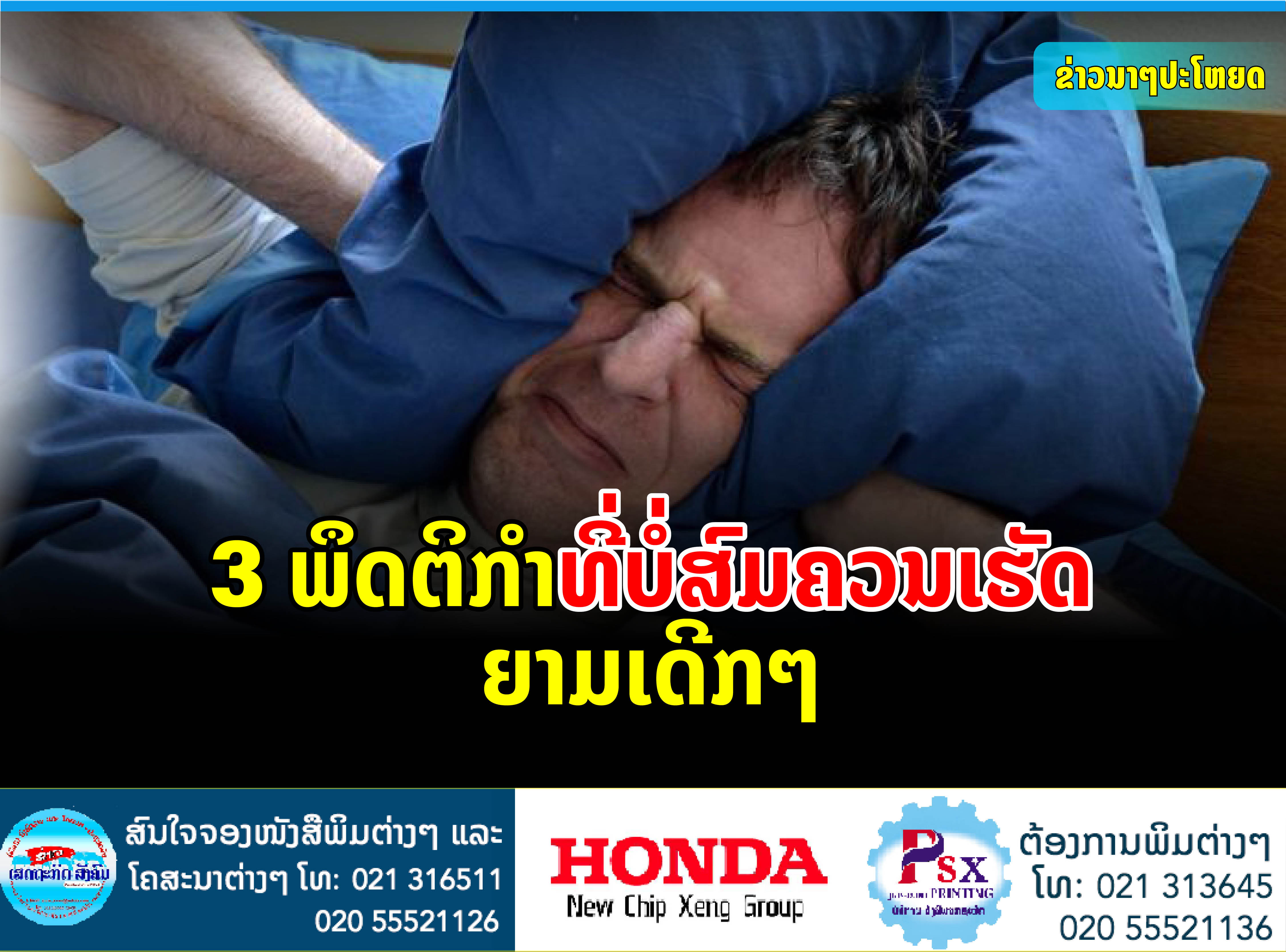 ພຶດຕິກຳການເປີດເພງສຽງດັງ ຫຼື ສົ່ງສຽງດັງໃນຮູບແບບຕ່າງໆໃນຍາມວິການ (ເດິກດື່ນທ່ຽງຄືນ) ເກີນໂມງທີ່ທາງລະບຽບບ້ານເມືອງກຳນົດໄວ້ຄືບໍ່ໃຫ້ໃຊ້ສຽງດັງເກີນ 23:00 -24:00 ໂມງນັ້ນຖືເປັນການລົບກວນເວລາພັກຜ່ອນຂອງຄົນອື່ນ ໃນທາງດ້ານຂອງສັງຄົມການຢູ່ຮ່ວມກັນຖືວ່າເປັນເລື່ອງທີ່ເສຍມາລະຍາດອີກຮູບແບບໜຶ່ງມັນປຽບເໝືອນການບໍ່ເຄົາລົບເວລາພັກຜ່ອນຂອງຄົນອື່ນ ແລະ ເປັນການບໍ່ເຄົາລົບກົດລະບຽບຂອງບ້ານເມືອງ ທ່ານຮູ້ ຫຼືບໍ່ວ່າ? ມົນລະພິດທາງສຽງນັ້ນເປັນອັນຕະລາຍ