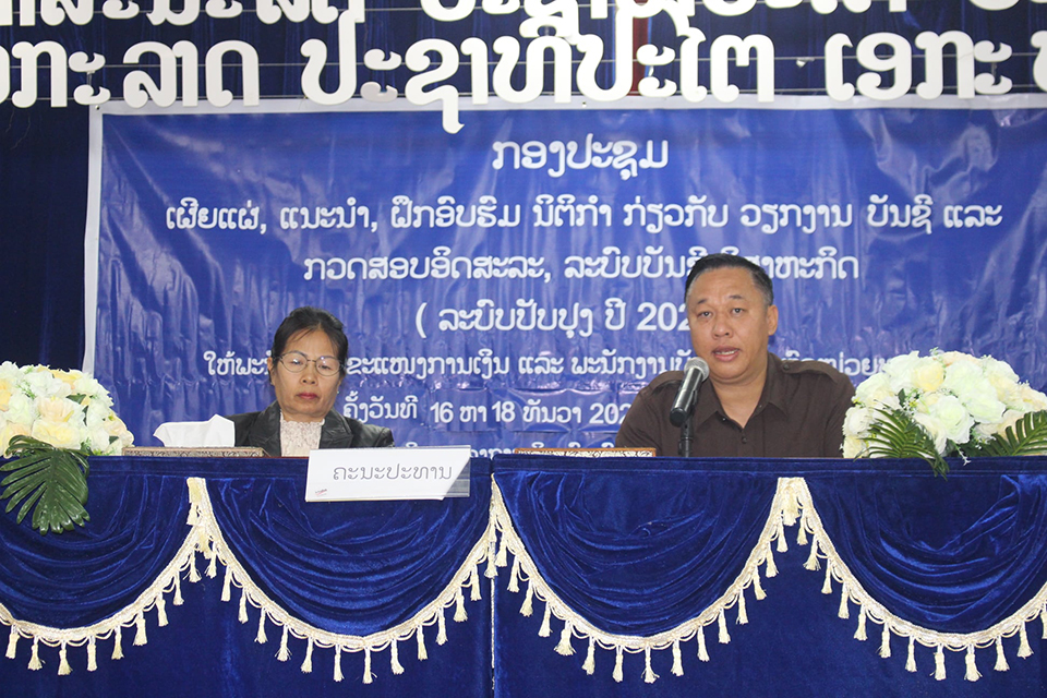 ຊຸດຝຶກອົບຮົມການບັນຊີແຫ່ງລັດ ແລະບັນຊີວິສາຫະກິດໄດ້ປິດລົງໃນວັນທີ 18 ທັນວາ ຜ່ານມາທີ່ສະໂມສອນພະແນກສຶກສາທິການ ແລະກີລາແຂວງໄຊສົມບູນ ພາຍຫຼັງທີ່ໄດ້ດໍາເດີນມາເປັນເວລາ 2 ວັນເຄິ່ງ ໂດຍການເຂົ້າຮ່ວມຂອງທ່ານ ນາງ ເກດແກ້ວ ຣາຊະພົນ ຫົວໜ້າພະແນກຄຸ້ມຄອງ-ກວດສອບອິດສະຫຼະ,