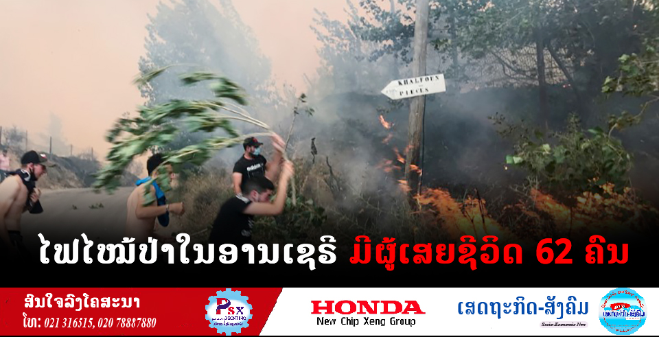 ເກີດເຫດໄຟໄໝ້ປ່າທີ່ກຳລັງລຸກລາມຢ່າງໜັກໃນເຂດພາກເໜືອຂອງອານເຊຣີ ເຮັດໃຫ້ມີຜູ້ເສຍຊີວິດແລ້ວ 62 ຄົນ.