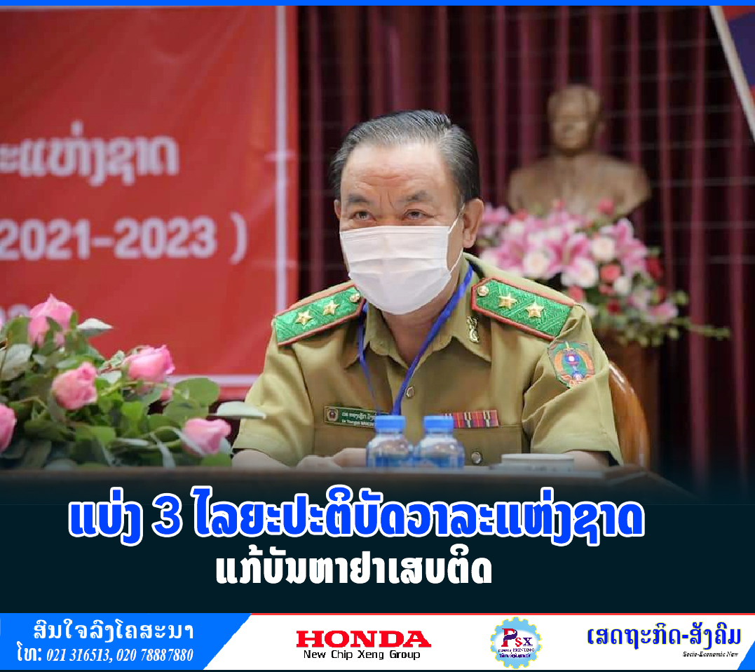 ລັດຖະບານກໍ່ຄືກະຊວງປ້ອງກັນຄວາມສະຫງົບໄດ້ແບ່ງການຈັດຕັ້ງປະຕິບັດວາລະແຫ່ງຊາດວ່າດ້ວຍການແກ້ໄຂບັນຫາຢາເສບຕິດອອກເປັນ 3 ໄລຍະທັງນີ້ກໍ່ເພື່ອເຮັດໃຫ້ຂອດປະຕິບັດຕົວຈິງມີໝາກຜົນສຳເລັດຕາມຄາດໝາຍວາງໄວ້.