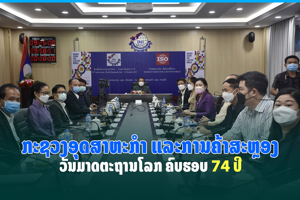 ວັນທີ 13 ຕຸລາ 2021 ນີ້ ກະຊວງອຸດສາຫະກໍາ ແລະການຄ້າໄດ້ຈັດພິທີຖະແຫຼງຂ່າວເນື່ອງໃນໂອກາດງານສະເຫຼີມສະຫຼອງວັນມາດຕະຖານໂລກ 14 ຕຸລາ ຄົບຮອບ 74 ປີ ພາຍໃຕ້ຄໍາຂວັນທີ່ວ່າ: “ວິໄສທັດຮ່ວມກັນຂອງພວກເຮົາເພື່ອໂລກທີ່ດີຂຶ້ນ”.