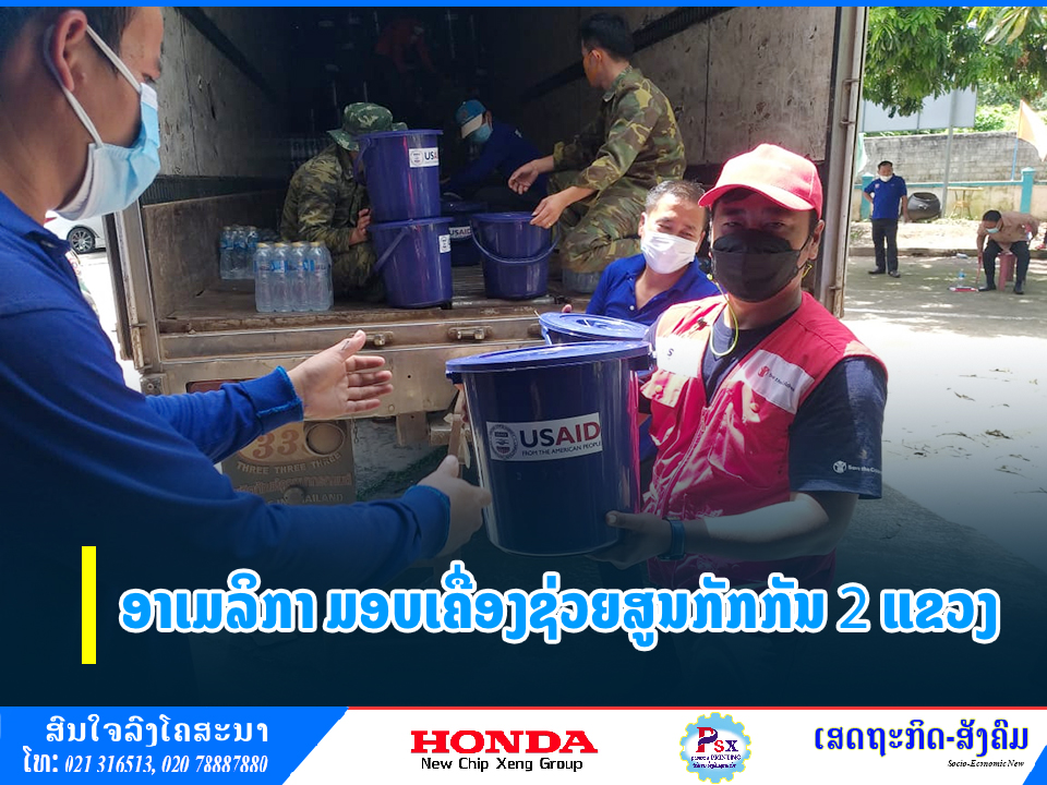ສະຫະລັດອາເມລິກາໄດ້ບໍລິຈາກອາຫານແຫ້ງ ແລະຊຸດອະນາໄມຈຳນວນມູນຄ່າຫຼາຍກວ່າ 1 ແສນໂດລາ ໃຫ້ແກ່ຄະນະກຳມະການຄຸ້ມຄອງໄພພິບັດແຂວງຄຳມ່ວນ ແລະແຂວງສະຫວັນນະເຂດອາຫານແຫ້ງ ແລະ ຊຸດອະນາໄມໄດ້ຖືກສະໜັບສະໜູນໂດຍທຶນການຊ່ວຍເຫຼືອລ້າ