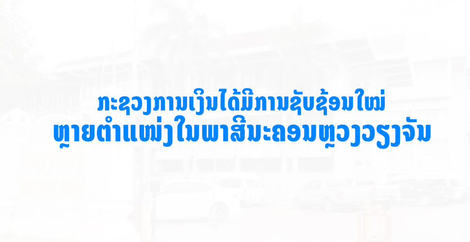 ກະຊວງການເງິນໄດ້ມີການຊັບຊ້ອນໃໝ່ຫຼາຍຕຳແໜ່ງໃນພາສີນະຄອນຫຼວງວຽງຈັນ ທັງນີ້ກໍ່ເພື່ອຄວາມຮຽກຮ້ອງຕ້ອງການທາງດ້ານວຽກງານແຕ່ລະໄລຍະຕາມພາລະບົດບາດໃໝ່ຂອງກົມພາສີກໍ່ຄືຂອງກົມສາຍຕັ້ງຂອງກະຊວງການເງິນໃນການຊັບຊ້ອນໝູນວຽນໃນຂອບເຂດທົ່ວປະເທດ.