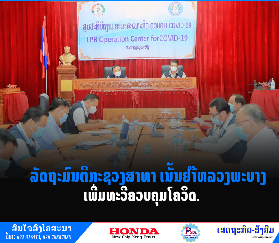 ເມື່ອວັນທີ 2 ຕຸລາ 2021 ແຂວງຫຼວງພະບາງ ໄດ້ຈັດກອງປະຊຸມຫາລືເພື່ອຮັບມື້ກັບການລະບາດຂອງເຊື້ອພະຍາດໂຄວິດ-19 ໂດຍການເປັນປະທານຂອງທ່ານ ບຸນແຝງ ພູມມະໄລສິດ ລັດຖະມົນຕີກະຊວງ ສາທາລະນະສຸກ, ທ່ານ ບຸນເລື່ອມ ມະນີວົງ ຮອງເຈົ້າແຂວງຫຼວງພະບາງພ້ອມດ້ວຍຄະນະສະເພາະກິດແຂວງເຂົ້າຮ່ວມ.