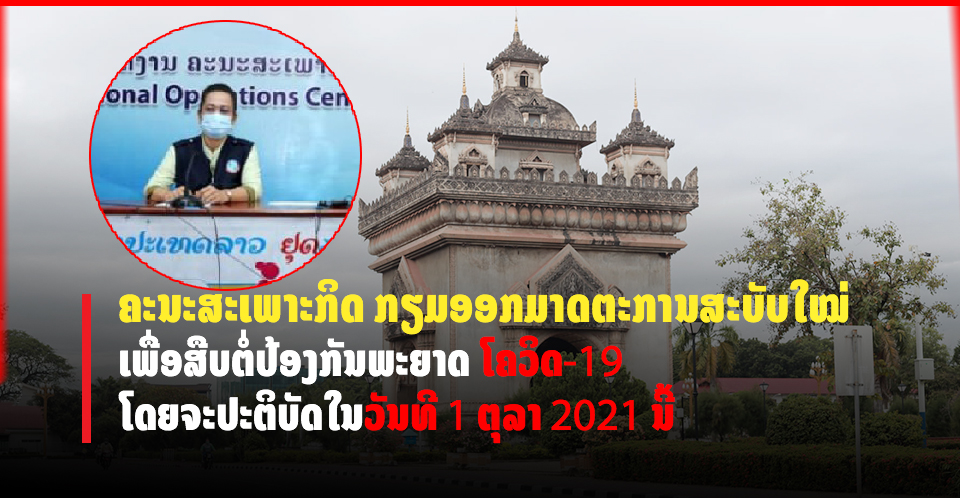 ໃນວັນທີ 29 ກັນຍາ 2021 ນີ້ຄະນະສະເພາະກິດເພື່ອປ້ອງກັນ, ຄວບຄຸມ ແລະແກ້ໄຂການແຜ່ລະບາດຂອງພະຍາດໂຄວິດ-19 ຂັ້ນສູນກາງໄດ້ແຈ້ງໃຫ້ຮູ້ໃນກຽມອອກມາດຕະການສະບັບໃໝ່ກ່ຽວກັບໃຫ້ສືບຕໍ່ມາດຕະການປ້ອງກັນພະຍາດໂຄວິດ-19 ນັບແຕ່ວັນທີ 1 ຕຸລາ 2021