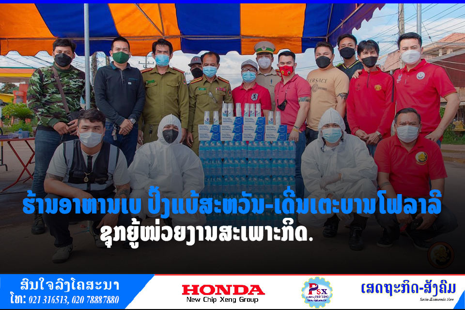 ວັນທີ 26-27 ຜ່ານມາທີມງານຮ້ານອາຫານເບ ປິ້ງແບ້ສະຫວັນ-ເດີ່ນເຕະບານໂຟລາລີລວມເຖິງສະມາຄົມມັງກອງທອງມອບເຄື່ອງດື່ມ, ເຈ້ວລາງມື ແລະເຄື່ອງທີ່ຈຳເປັນມອບໃຫ້ຫນ່ວຍງານຄະນະສະເພາະກິດປ້ອງກັນ ແລະຄວບຄຸມການແຜ່ລະບາດພະຍາດໂຄວິດ-19