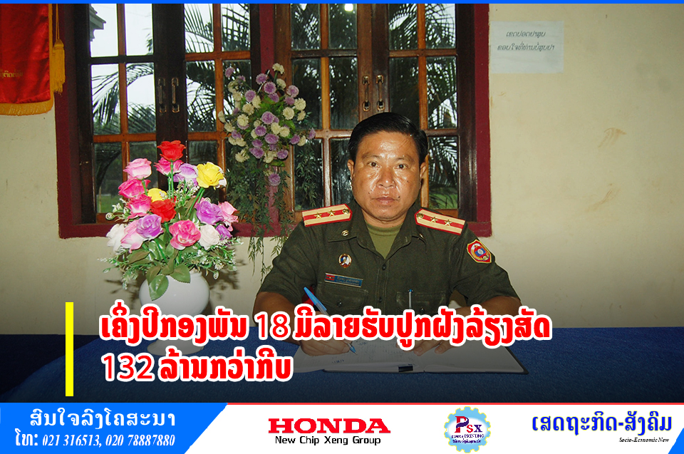 ຍ້ອນການປະຕິບັດຕາມທິດຊີ້ນໍາຂອງຂັ້ນເທິງໃນການປູກຝັງລ້ຽງສັດຕາມທິດນໍາເພີ່ງຕົນເອງ, ກຸ້ມຕົນເອງ ແລະສ້າງຄວາມເຂັ້ມແຂງດ້ວຍຕົນເອງເຮັດໃຫ້ເຄິ່ງປີຜ່ານມາກອງພັນທີ 18 ຂອງກອງພົນທີ 5 ສາມາດມີລາຍຮັບຈາກການປູກຝັງ ແລະລ້ຽງສັດ132 ກວ່າລ້ານກີບ