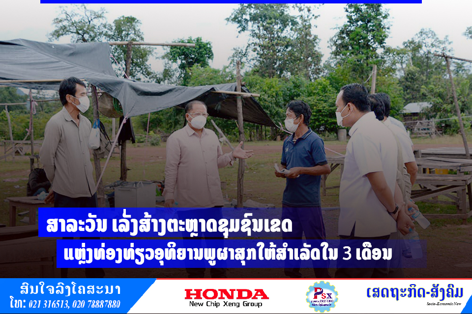 ໂຄງການກໍ່ສ້າງຕະຫຼາດຊຸມຊົນບ້ານຄຳທອງ ເມືອງສາລະວັນ ຊຶ່ງນອນໃນເຂດແຫຼ່ງທ່ອງທ່ຽວອຸທິຍານພູຜາສຸກທີ່ພວມຢູ່ໃນຂັ້ນຕອນການລົງມືກໍ່ສ້າງ ແລະຄາດວ່າຈະໃຫ້ສຳເລັດ ແລະເປີດໃຫ້ພໍ່ແມ່ປະຊາຊົນໄດ້ຊົມໄຊ້ຢ່າງເປັນທາງການໃນເດືອນຕຸລາ 2021 ນີ້.