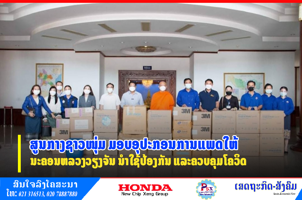 ສູນກາງຊາວໜຸ່ມ ປະຊາຊົນ ປະຕິວັດລາວ ໄດ້ນຳເອົາອຸປະກອນການແພດ, ເຄື່ອງອຸປະໂພກ-ບໍລິໂພກ ແລະເງິນສົດຈໍານວນໜຶ່ງມາມອບໃຫ້ອົງການປົກຄອງນະຄອນຫລວງວຽງຈັນ ເພື່ອປະກອບສ່ວນເຂົ້າໃນການປ້ອງກັນ, ຄວບຄຸມ ແລະສະກັດກັ້ນການລະບາດພະຍາດໂຄວິດ-19