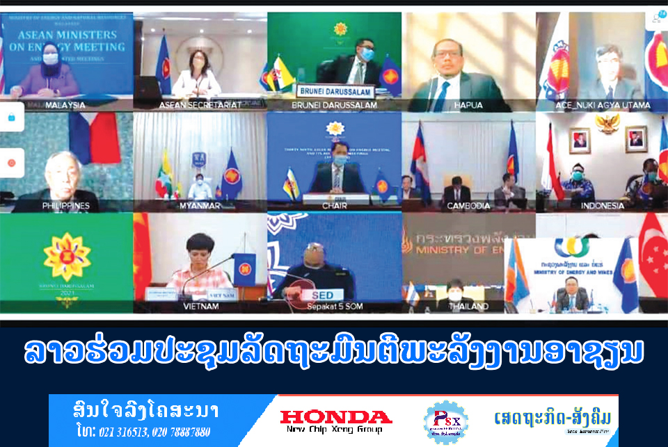 ໃນລະຫວ່າງວັນທີ 13-14 ກັນຍາ 2021 ທີ່ກະຊວງພະລັງງານ ແລະບໍ່ແຮ່, ກົມແຜນການ ແລະການຮ່ວມມືຊຶ່ງນໍາໂດຍທ່ານ ອາຄົມເດດ ວົງໄຊ ຫົວໜ້າເຈົ້າໜ້າທີ່ອາວຸໂສພະລັງງານອາຊຽນ ສປປ ລາວ ພ້ອມດ້ວຍຮອງຫົວໜ້າເຈົ້າໜ້າທີ່ອາວຸໂສພະລັງງານອາຊຽນ ສປປ ລາວ,