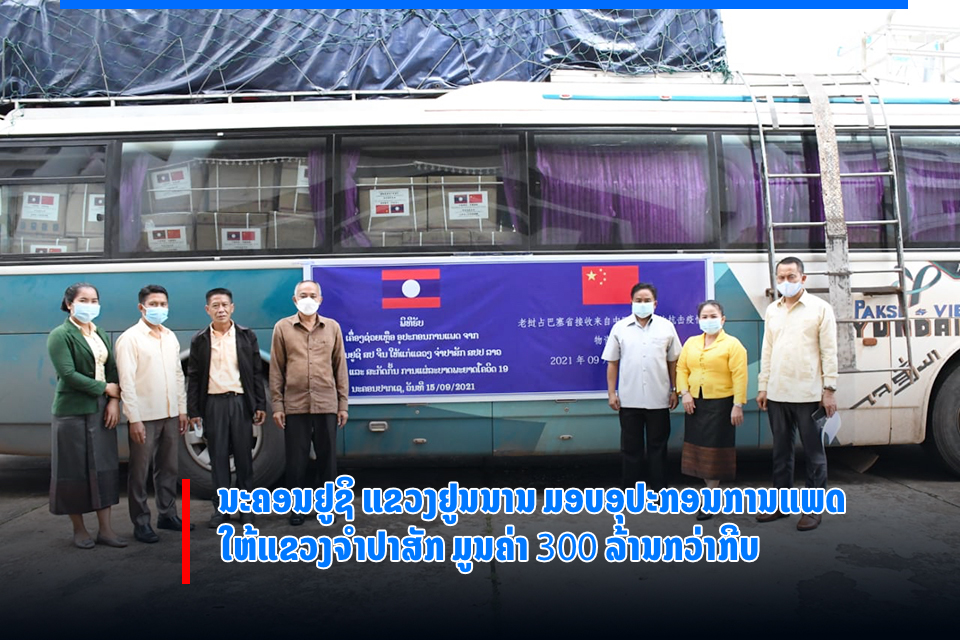 ນະຄອນຢູຊິ ແຂວງຢູນນານ ຂອງສາທາລະນະລັດ ປະຊາຊົນຈີນ ມອບອຸປະກອນການແພດໃຫ້ແຂວງຈຳປາສັກ ສປປ ລາວ ລວມມູນຄ່າ 2 ແສນຢວນ ຫຼືປະມານ 300 ລ້ານກວ່າກີບ, ເພື່ອປະກອບສ່ວນເຂົ້າໃນວຽກງານປ້ອງກັນສະກັດກັ້ນ, ຄວບຄຸມ ແລະແກ້ໄຂການລະບາດພະຍາດໂຄວິດ-19