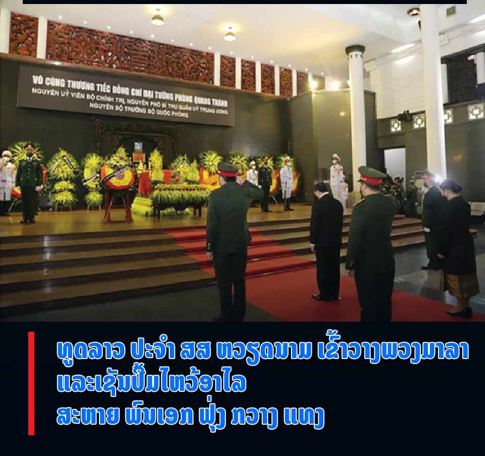 ຕອນເຊົ້າວັນທີ 15 ກັນຍາ 2021 ນີ້, ສະຫາຍ ແສງເພັດ ຮຸ່ງບຸນຍວງ ເອກອັກຄະລັດຖະທູດ ວິສາມັນ ຜູ້ມີອຳນາດເຕັມ ແຫ່ງ ສປປ ລາວ ປະຈຳ ສສ ຫວຽດນາມ ພ້ອມດ້ວຍຄະນະໄດ້ຕາງໜ້າຄະນະບໍລິຫານງານສູນກາງພັກປະຊາຊົນ ປະຕິວັດລາວ, ກະຊວງປ້ອງກັນປະເທດແຫ່ງ ສປປ ລາວ