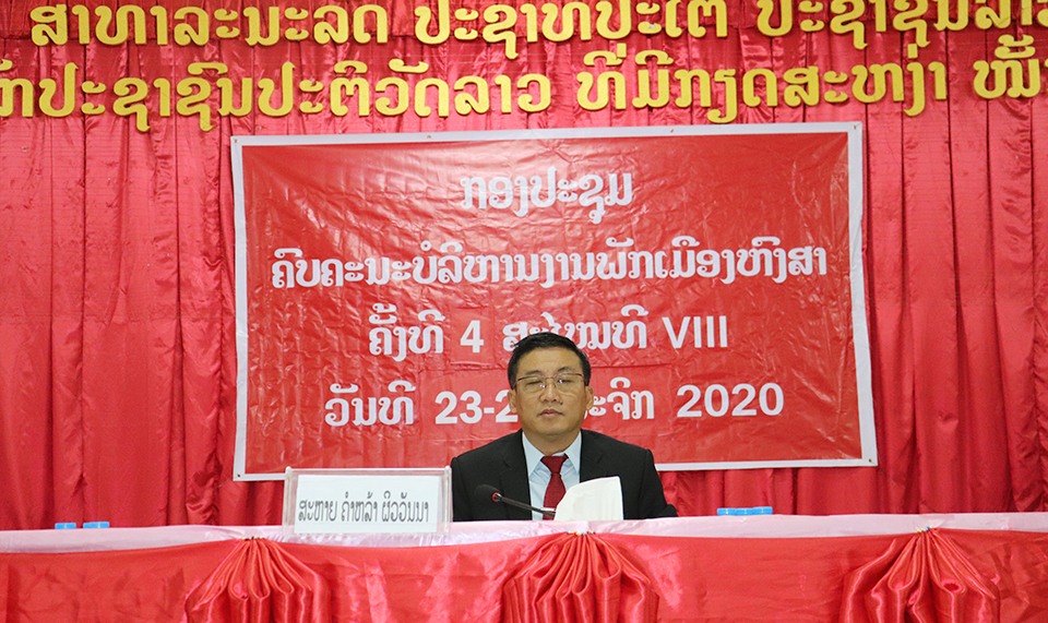 ສໍາເລັດກອງປະຊຸມຄົບຄະນະບໍລິຫານງານພັກເມືອງຄັ້ງທີ 4 ສະໄໝທີ VIII ໃນຕອນເຊົ້າວັນທີ 24 ພະຈິກ 2020 ທີ່ສະໂມສອນເມືອງ, ພາຍຫຼັງໄດ້ດໍາເນີນມາເປັນເວລາ 1 ວັນເຄິ່ງ ໂດຍການເປັນປະທານຂອງທ່ານ ຄໍາຫຼ້າ ຜິວວັນນາ ເລຂາຄະນະບໍລິຫານງານພັກເມືອງເຈົ້າເມືອງໆຫົງສາ,