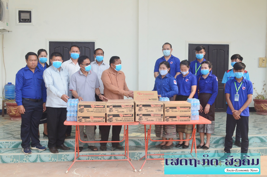 ວັນທີ 22 ເມສາ 2020, ທ່ານ ນາງ ບັງອອນ ພິມມະສອນ ຮອງເລຂາຂາຄະນະບໍລິຫານງານຊາວໜຸ່ມແຂວງສະຫວັນນະເຂດ ພ້ອມດ້ວຍທິມງານອາສາສະໝັກ ຊາວໜຸ່ມແຂວງຕ້ານພະຍາດໂຄ ວິດ 19 ໄດ້ນໍາເອົານົມໄວຕາມີວຈໍາ ນວນ 12 ແກັດ ແລະນໍ້າດື່ມຈໍານວນ 7 ແຟັກ ລວມມູນຄ່າທັງໝົດ 1,5 ລ້ານກີບ,