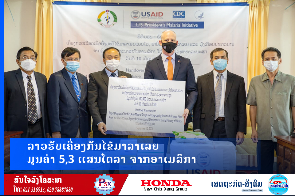 ສ. ອາເມລິກາ ສືບຕໍ່ໃຫ້ການຊ່ວຍ ເຫຼືອ ສປປ ລາວ ໃນຂະແໜງການສາທາລະນະສຸກໂດຍທ່ານ ໄມໂຄ ຣອນນິ້ງ ຜູ້ຕາງໜ້າອົງການ USAID ປະຈໍາລາວ ໄດ້ມອບມຸ້ງເຄືອບຢາຈຳນວນ 70 ພັນດາງ, ເຄື່ອງກວດເລືອດເພື່ອບົ່ງມະຕິໄຂ້ມາລາເລຍຢ່າງໄວຈຳນວນ 4,5 ແສນຊຸດ