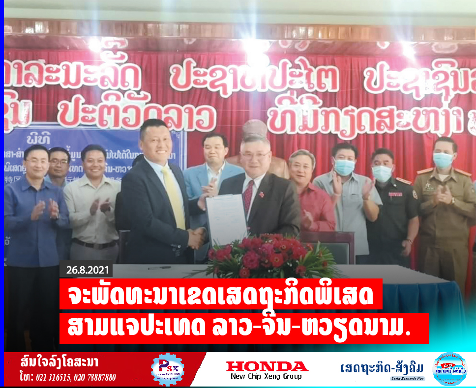 ພິທີເຊັນບົດບັນທຶກຄວາມເຂົ້າໃຈ (MOU) ເພື່ອສຶກສາ-ສຳຫຼວດ, ເກັບກຳຂໍ້ມູນຄວາມເປັນໄປໄດ້ ໃນການພັດທະນາ ແລະກໍ່ສ້າງເຂດເສດຖະກິດພິເສດຢູ່ເຂດສາມແຈປະເທດລາວ-ຈີນ-ຫວຽດນາມ ທີ່ເມືອງຍອດອູ ແຂວງຜົ້ງສາລີລະຫ່ວາງອົງການປົກຄອງແຂວງຜົ້ງສາລີກັບກຸ່ມບໍລິສັດ ຢູເຈີງ ລົງທຶນ ຈຳກັດ ສປ ຈີນ