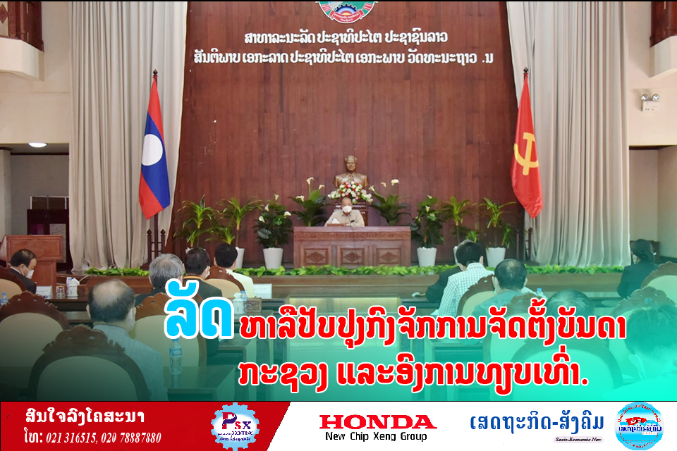 ວັນທີ 20 ສິງຫາ 2021 ທີ່ສຳນັກງານນາຍົກລັດຖະມົນຕີໄດ້ຈັດກອງປະຊຸມປຶກສາຫາລືວຽກງານການປັບປຸງກົງຈັກການຈັດຕັ້ງຂອງບັນດາກະຊວງ ແລະອົງການທຽບເທົ່າ, ໂດຍການເປັນປະທານຂອງ ທ່ານ ກິແກ້ວ ໄຂຄຳພິທູນ, ຮອງນາຍົກລັດຖະມົນຕີ,