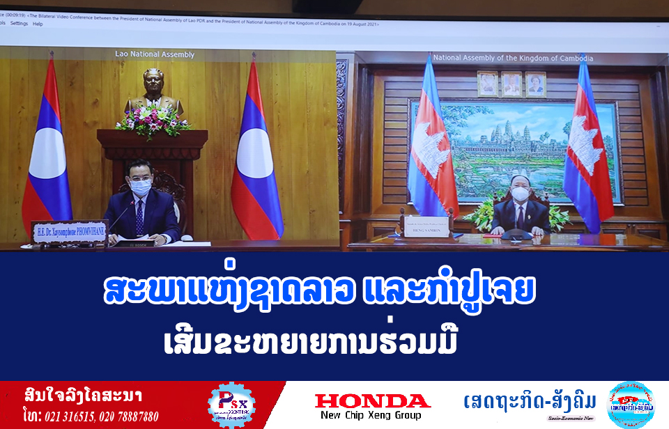(ສພຊ) ເພື່ອເປັນການສືບຕໍ່ເສີມຂະຫຍາຍສາຍພົວພັນມິດຕະພາບອັນເປັນມູນເຊື້ອ, ການພົວພັນແບບຄູ່ຮ່ວມມືຍຸດທະສາດຮອບດ້ານ ແລະໝັ້ນຄົງຍາວນານລະຫວ່າງລາວ-ກໍາປູເຈຍ ກໍ່ຄືລະຫວ່າງສອງອົງການນິຕິບັດຍັດຂອງສອງປະເທດໃນຕອນເຊົ້າວັນທີ 19 ສິງຫາ 2021