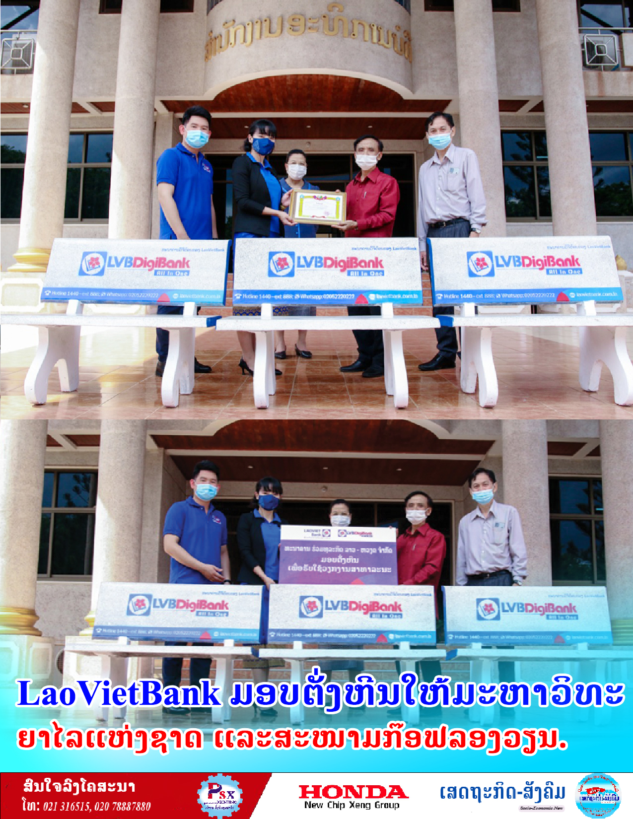 LaoVietBank ມອບຕັ່ງຫີນໃຫ້ມະຫາວິທະຍາໄລແຫ່ງຊາດ ແລະສະໜາມກ໊ອຟລອງວຽນ