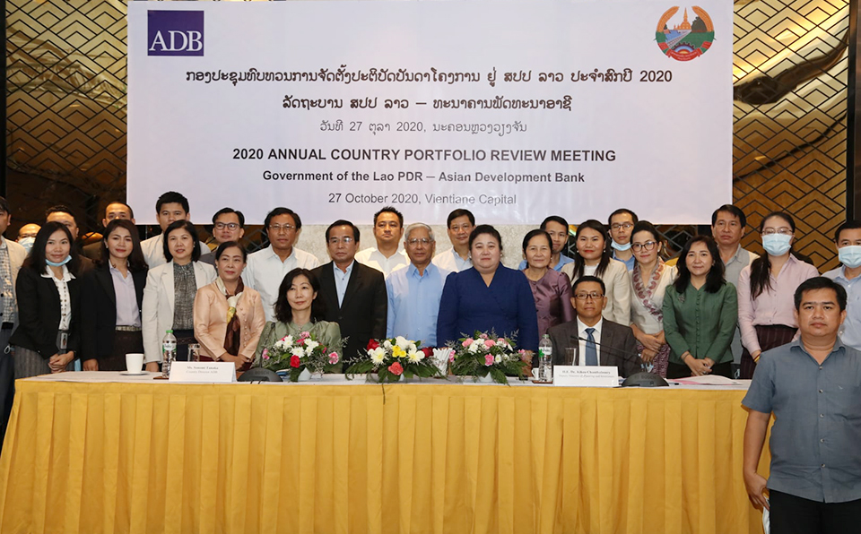 ວັນທີ 27 ຕຸລາຜ່ານມາທີ່ນະຄອນຫຼວງວຽງຈັນໄດ້ມີກອງປະຊຸມທົບທວນການຈັດຕັ້ງປະຕິບັດບັນດາໂຄງການຢູ່ ສປປ ລາວ ປະຈຳປີ2020 ລະຫວ່າງລັດຖະບານລາວ ແລະທະນາຄານພັດທະນາອາຊີ (ADB) ເພື່ອພ້ອມກັນສະຫຼຸບ, ຕີລາຄາ ແລະປະເມີນຜົນຂອງການຈັດຕັ້ງປະຕິບັດບັນດາໂຄງການທັງໝົດທີ່ ADB
