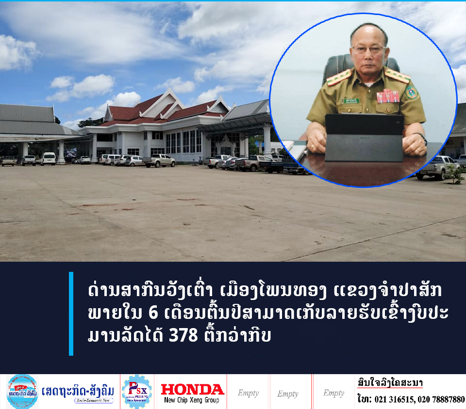 ເປັນການຈັດຕັ້ງປະຕິບັດໜ້າທີ່ຢ່າງມີປະສິດທິພາບສູງພໍສົມຄວນສໍາລັບດ່ານສາກົນວັງເຕົ່າ ເມືອງໂພນທອງ ແຂວງຈໍາປາສັກ ພາຍໃນ 6 ເດືອນຕົ້ນປີສາມາດເກັບລາຍຮັບເຂົ້າງົບປະມານລັດໄດ້ 378 ຕື້ກວ່າກີບ ພ້ອມຈະສູ້ຊົນເຮັດໃຫ້ທິດທາງແຜນການເຄິ່ງປີບັນລຸຄາດໝາຍທີ່ກໍານົດໄວ້.