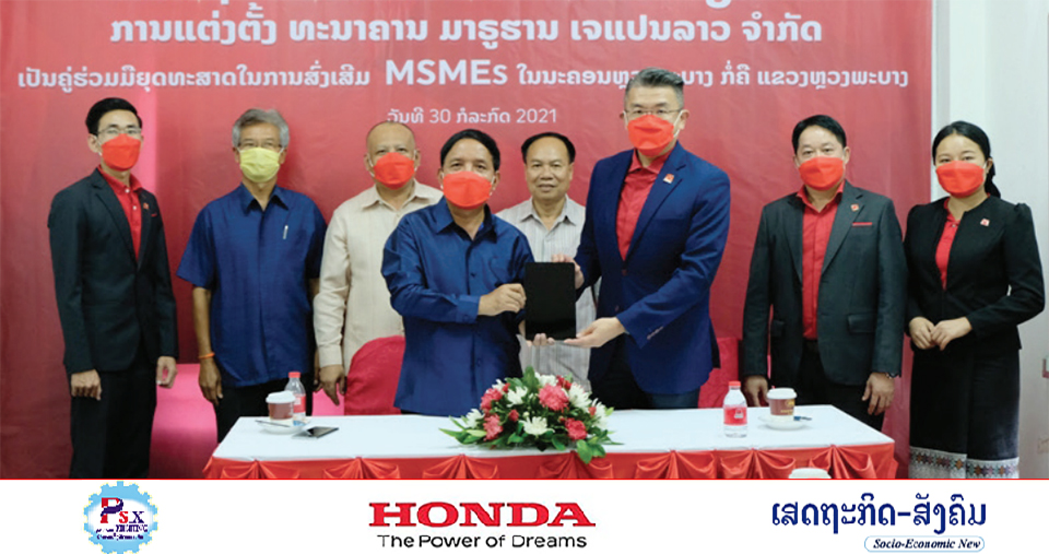 ພິທີເຊັນບົດບັນທຶກຄວາມເຂົ້າໃຈກ່ຽວກັບການແຕ່ງຕັ້ງທະນາຄານມາຣູຮານ ເຈແປນ ລາວ ຈໍາກັດ ເປັນຄູ່ຮ່ວມມືຍຸດທະສາດໃນການສົ່ງເສີມ MSMEs ໃນນະຄອນຫຼວງພະບາງ ກໍ່ຄືແຂວງຫຼວງພະບາງໄດ້ຈັດຂຶ້ນໃນ ວັນທີ 30 ກໍລະກົດ 2021 ນີ້ທີ່ທະນາຄານມາຣູຮານສາຂາແຂວງຫຼວງພະບາງ,