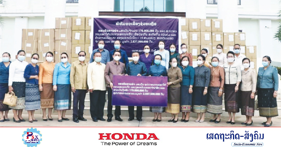 ບັນດາຄອບຄົວການນຳນຳໂດຍທ່ານ ນາງ ນາລີ ສີສຸລິດ ພັນລະຍາທ່ານ ທອງລຸນ ສີສຸລິດ ປະທານປະເທດໄດ້ມອບເຄື່ອງຊ່ວຍເຫຼືອໃຫ້ຄະນະສະເພາະກິດເພື່ອປ້ອງກັນຄວບຄຸມ ແລະແກ້ໄຂການລະບາດຂອງພະຍາດໂຄວິດ-19 ຈຳນວນ 3 ແຂວງຄື: