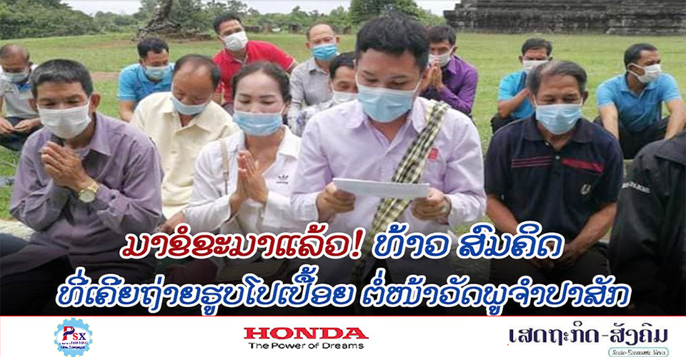 ໃນຕອນບ່າຍຂອງວັນທີ 23 ກໍລະກົດ 2021 ນີ້, ອົງການປົກຄອງເມືອງຈຳປາສັກໄດ້ນຳພາ ທ້າວ ສົມຄິດ ສິມພະວົງ ອາຍຸ 17 ປີ ອາຊີບ ນັກຮຽນ, ປະຈຸບັນຢູ່ບ້ານຂອນແກ່ນເມືອງຈຳປາສັກ ແຂວງຈຳປາສັກເຂົ້າມາຈະມາຄາລະວະຕໍ່ໜ້າຜາສີນຫີນວັດພູຈຳປາສັກມໍລະດົກໂລກແຫ່ງທີ 2 ຂອງ ສປປ ລາວ