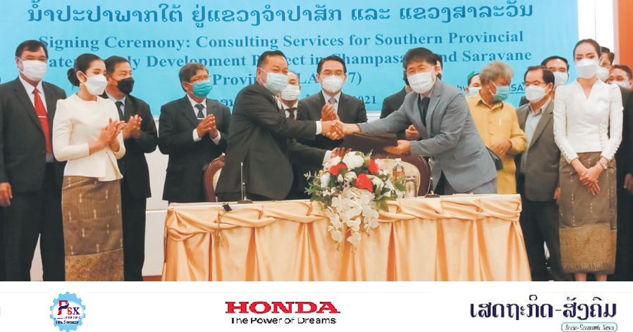 ວັນທີ 22 ກໍລະກົດ 2021, ຢູ່ໂຮງແຮມຈໍາປາສັກແກຣນ ນະຄອນປາກເຊ ແຂວງຈຳປາສັກ ໄດ້ມີພິທີເຊັນສັນຍາທີ່ປຶກສາເພື່ອສໍາຫຼວດ-ອອກແບບ ແລະຄຸ້ມຄອງໂຄງການພັດທະນາລະບົບສະໜອງນໍ້າປະປາພາກໃຕ້ແຂວງຈໍາປາສັກ ແລະແຂວງສາລະວັນ.