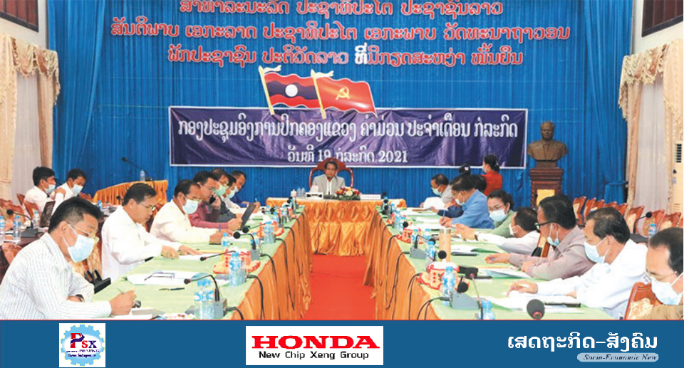 ກອງປະຊຸມອົງການປົກຄອງແຂວງຄໍາມ່ວນໄດ້ໄຂຂຶ້ນໃນວັນທີ 19 ກໍລະກົດ 2021 ຢູ່ທີ່ເຮືອນຮັບແຂກເລກ 01 ຂອງແຂວງໂດຍການເປັນປະທານຂອງທ່ານ ວັນໄຊ ພອງສະຫວັນ ເຈົ້າແຂວງໆຄໍາມ່ວນ, ມີສະພາປະຊາຊົນແຂວງ, ບັນດາທ່ານຮອງເຈົ້າແຂວງ, ຫົວໜ້າ-ຮອງຫົວໜ້າພະແນກການອ້ອມຂ້າງແຂວງເຂົ້າຮ່ວມ.
