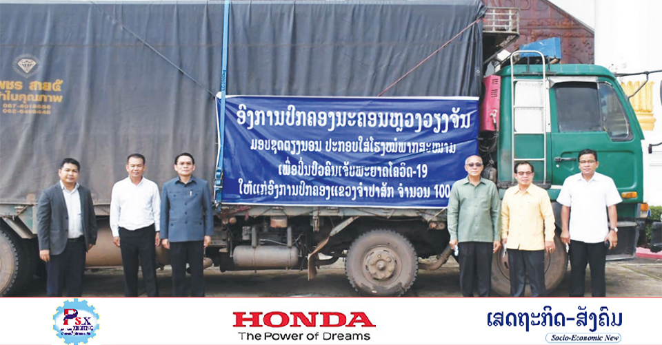 ອົງການປົກຄອງນະຄອນຫຼວງວຽງຈັນ ມອບຊຸດຕຽງນອນປິ່ນປົວຄົນເຈັບພະຍາດໂຄວິດ-19 ຈໍານວນ 100 ຊຸດ, ລວມມູນຄ່າທັງໝົດ 142.000.000 ກີບ, ໃຫ້ແຂວງຈຳປາສັກ, ເພື່ອປະກອບເຂົ້າໃສ່ໂຮງໝໍພາກສະໜາມໃນການປິ່ນປົວຄົນເຈັບພະຍາດໂຄວິດ-19.