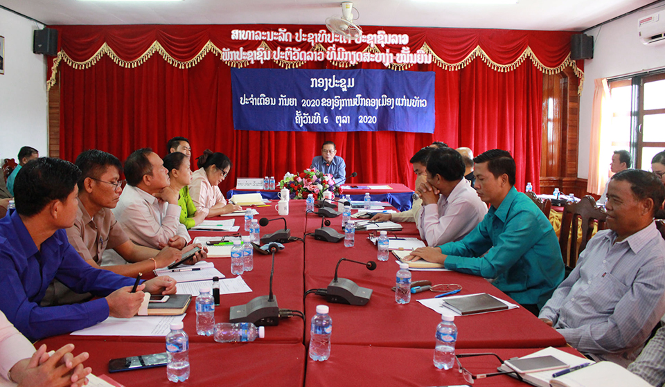 ກອງປະຊຸມປະຈໍາເດືອນກັນຍາຂອງອົງການປົກຄອງເມືອງແກ່ນທ້າວ ແຂວງໄຊຍະບູລີ ໄດ້ຈັດຂຶ້ນໃນວັນທີ 6 ຕຸລາ 2020 ທີ່ຫ້ອງປະຊຸມຫ້ອງວ່າການເມືອງໂດຍການເປັນປະທານຂອງທ່ານ ອໍາຄາ ລັດສະໝີ ເລຂາພັກເມືອງ, ເຈົ້າເມືອງໆ ແກ່ນທ້າວ,