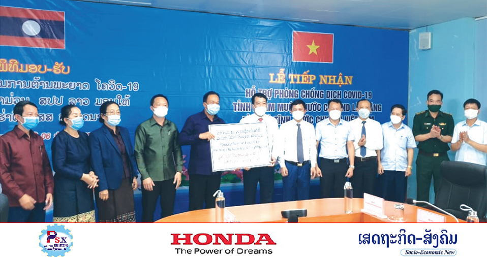 ວັນທີ 6 ກໍລະກົດ 2021 ທີ່ດ່ານສາກົນນໍ້າພາວ ທ່ານ ບຸນມີ ພິມມະສອນ ປະທານສະພາປະຊາຊົນແຂວງຄຳມ່ວນພ້ອມຄະນະໄດ້ເດີນທາງໄປມອບເຄື່ອງຊ່ວຍເຫຼືອເພື່ອຮັບໃຊ້ເຂົ້າໃນວຽກງານຕ້ານ ແລະ ປ້ອງກັນພະຍາດໂຄວິດ-19