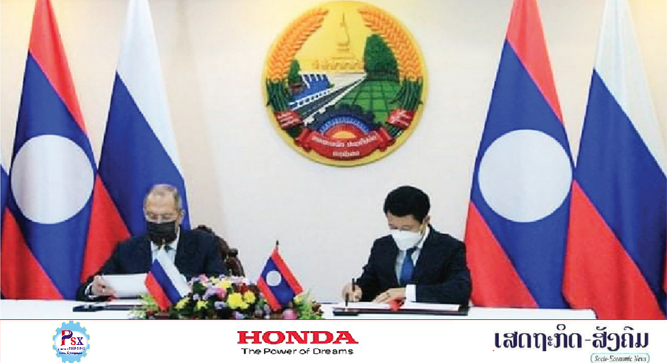 ວັນທີ 7 ກໍລະກົດ 2021 ທີ່ນະຄອນຫຼວງວຽງຈັນ, ທ່ານ ສະເຫຼີມໄຊ ກົມມະສິດ ລັດຖະມົນຕີກະຊວງການຕ່າງປະເທດໄດ້ໃຫ້ກຽດຕ້ອນຮັບ ແລະພົບປະປຶກສາຫາລືກັບ ທ່ານ ເຊຣເກ ລາວະຣົບ ລັດຖະມົນຕີກະຊວງການຕ່າງປະເທດແຫ່ງສະຫະພັນຣັດເຊຍໃນໂອກາດນຳພາຄະນະຜູ້ແທນມາຢ້ຽມຢາມເຮັດວຽກຢູ່ ສປປ ລາວ