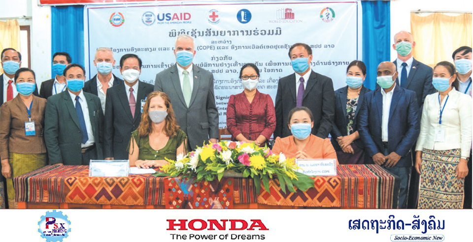 ໂດຍການສະໜັບສະໜູນທຶນຈາກ ປະເທດສະຫະລັດອາເມລິກາ, ອົງການ ເວີລດ໌ເອດຢູເຄຊັນ ປະຈຳ ສປປ ລາວ ແລະ ໂຄງການອົງຄະທຽມ ແລະ ເຄື່ອງຄໍ້າຊູ ຫຼືໂຄງການ COPE ໄດ້ລົງນາມຂໍ້ຕົກລົງໃນການໃຫ້ທຶນຊ່ວຍເຫຼືອລ້າໃນວັນທີ 28 ມິຖຸນາ 2020 ທີ່ນະຄອນຫຼວງວຽງຈັນ, ສປປ ລາວ.