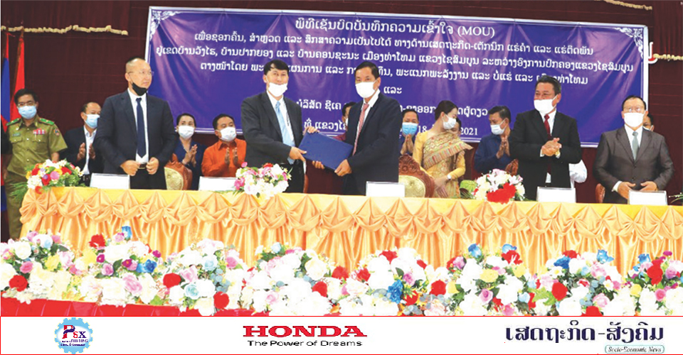 ພິທີເຊັນບົດບັນທຶກຄວາມເຂົ້າໃຈ MOU ເພື່ອຊອກຄົ້ນ, ສຳຫຼວດ ແລະສຶກສາຄວາມເປັນໄປໄດ້ທາງດ້ານເສດຖະກິດ-ເຕັກນິກ, ແຮ່ຄຳ ແລະແຮ່ຕິດພັນຢູ່ເຂດບ້ານວັງໄຮ, ບ້ານປາກຍອງ ແລະບ້ານຄອນຊະນະ, ເມືອງທ່າໂທມ ຂອງບໍລິສັດ CK (ຊີເຄ)