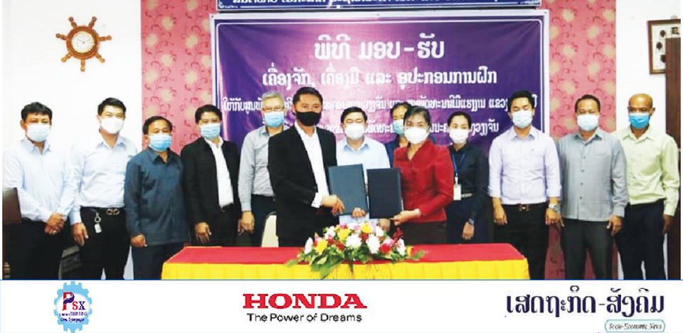 ພິທີມອບ-ຮັບເຄື່ອງຈັກເຄື່ອງມື ແລະອຸປະກອນການຝຶກໃຫ້ສູນພັດທະນາສີມືແຮງງານ ນະຄອນຫຼວງວຽງຈັນ ແລະສູນພັດທະນາສີມືແຮງງານແຂວງອັດຕະປືຈັດຂຶ້ນວັນທີ 10 ມິຖຸນາ 2021 ທີ່ສູນພັດທະນາສີມືແຮງງານ ນະຄອນ ຫຼວງວຽງຈັນ