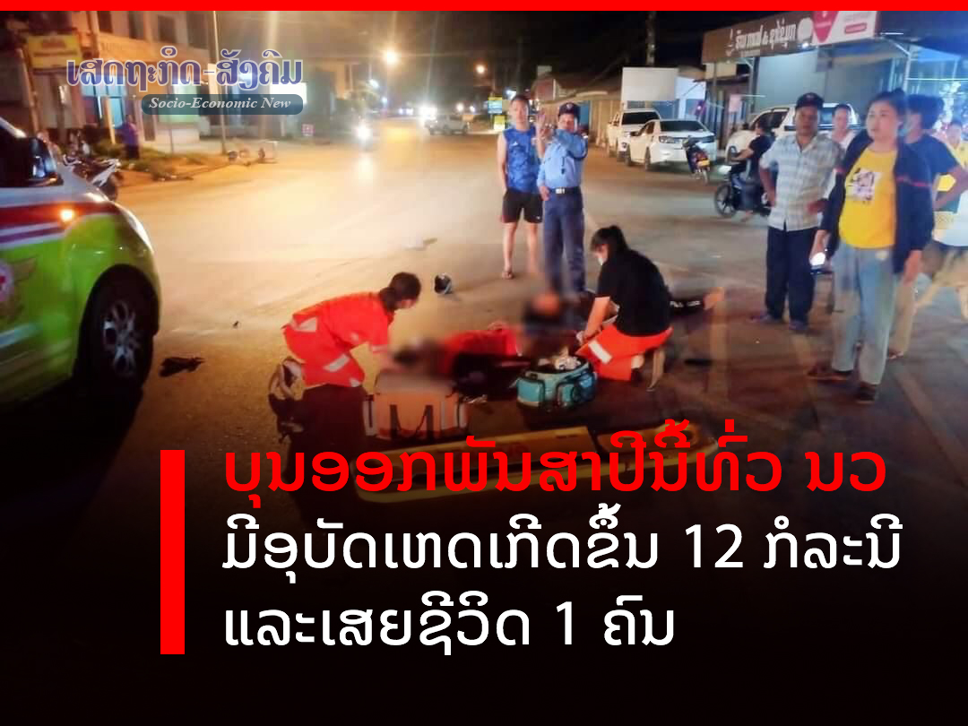 ຕາມຂໍ້ມູນຈາກພະແນກຕຳຫລວດຈະລາຈອນ ນະຄອນຫລວງວຽງຈັນ (ນວ) ໃຫ້ຮູ້ວ່າ: ໃນໄລຍະບຸນອອກພັນສາ ປະວໍລະນາ ປະຈຳປີ 2022 ນີ້, ນັບແຕ່ວັນທີ 9-11 ຕຸລາທົ່ວນະຄອນຫລວງວຽງຈັນ ມີອຸບັດເຫດເກີດຂຶ້ນທັງໝົດ 12 ກໍລະນີ,